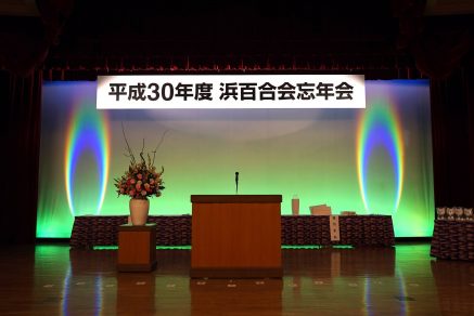 グランドホテル浜松で開催された平成30年度浜百合会忘年会にて照明協力しました。ステージを虹のアーチで鮮やかに彩りました。当社では各種イベント向けにホロライト・レインボウの貸出を行っています。
