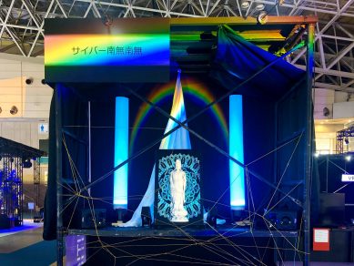 メディア&エンターテインメント総合展示会 Inter BEE 2019にて、現代版「お浄土」の再現実験を行うサイバー南無南無ブースをレインボウ照明協力しました。仏像と虹色が融合した神々しいブースとなりました。https://www.cyber-namunamu.com/