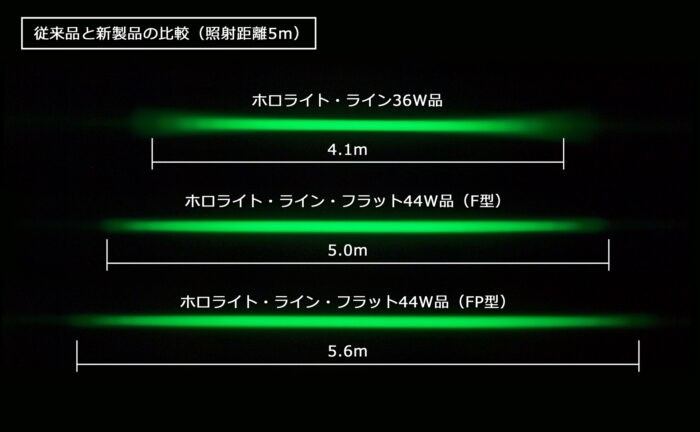 本製品は、従来品「ホロライト・ライン36W品」と比較して、直線光の平坦度と光出力を強化することで、視認性を大幅に向上しています。さらに、直線光の長さに応じて選択可能な「F型」および「FP型」 の2種類を用意しました。照明色は赤・緑・青・白・電球色の5色に加え、近赤外光(850nm・940nm)もラインアップしました。これにより、製造現場の安全性向上、検査工程の効率化、特殊用途への対応 など、幅広い分野での活用が可能となります。