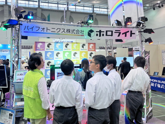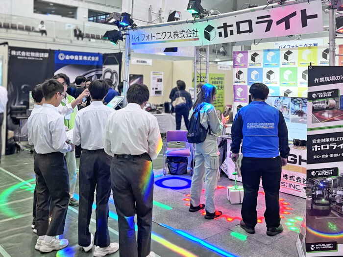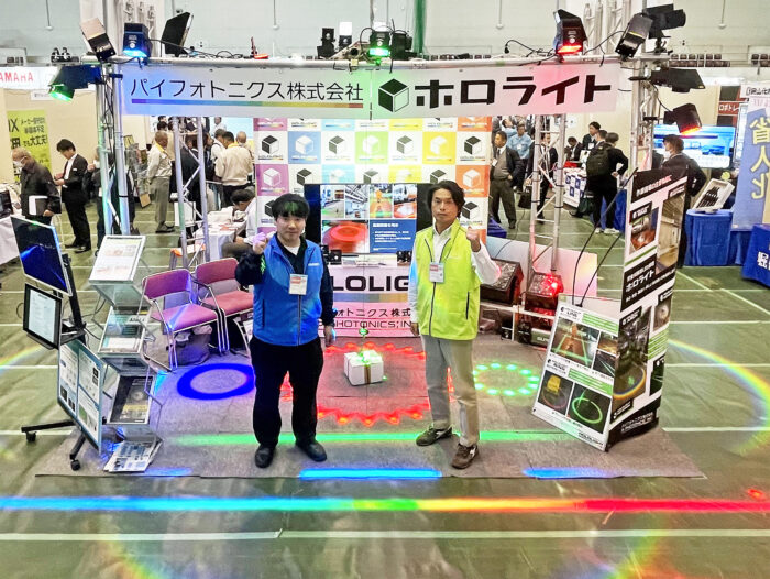 静岡県磐田市で開催された「第15回 産業振興フェア in いわた」に当社も出展いたしました。本フェアは、地域産業の魅力発信と新たなビジネスチャンスの創出を目的とした総合展示会です。当社ブースでは、新製品「ホロライト・ライン・フラット」の他、安全・演出照明など多様なシーンで活用される「ホロライト・シリーズ」をご紹介しました。また、会期2日目に開催された小中学生向け「おもしろ科学教室」にも訪問企業として参加しており当日は小中学生のみなさんにも展示中の実機に直接触れていただき、製品を身近に感じていただく機会となりました。