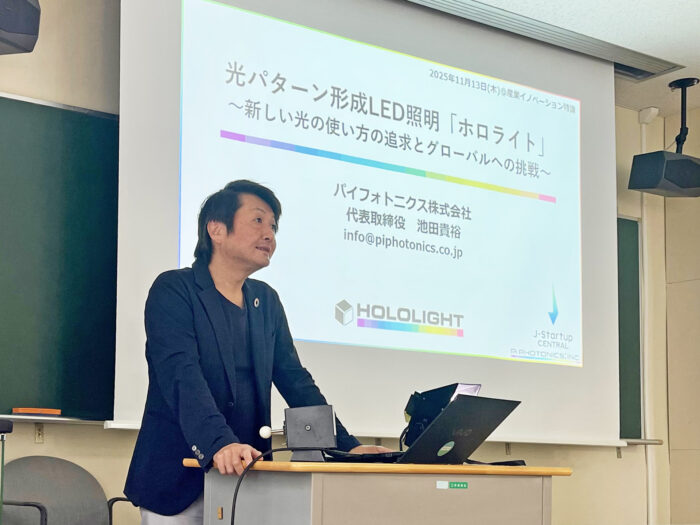 講演報告:産業イノベーション特論@静岡大学 2025.11.13 外部発表 当社代表の池田が、静岡大学にて「起業家精神」をテーマに講義を行いました。講義では、挑戦を重ねる中で得た成功体験や、起業実践を通じて培った経営哲学、そして将来に夢を持つことの重要性について語りました。また、受講生には「自らの将来の夢」について考える課題が出され、活発な意見交換が行われました。 産業イノベーションセンター公式HPはこちら Facebookページを見る お知らせ一覧