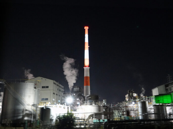 富士市が進める工場夜景の観光資源化の取組みの一環として、当社が照明協力を行っている市内2か所の巨大煙突の特別ライトアップがスタートしました。初日の10日には、点灯式に加え、夜景スポットをめぐる特別運行「夜景電車」も実施され、多くの皆さまに幻想的な光景を楽しんでいただきました。初日の様子は静岡新聞に掲載されたほか、NHKおよびSBSのニュースでも放送され、大きな反響をいただいております。今後も地域の魅力発信に貢献できるよう取り組んでまいります。
