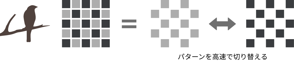 市松状の光パターンが高速に切り替わり、人間の目では全点灯に見える