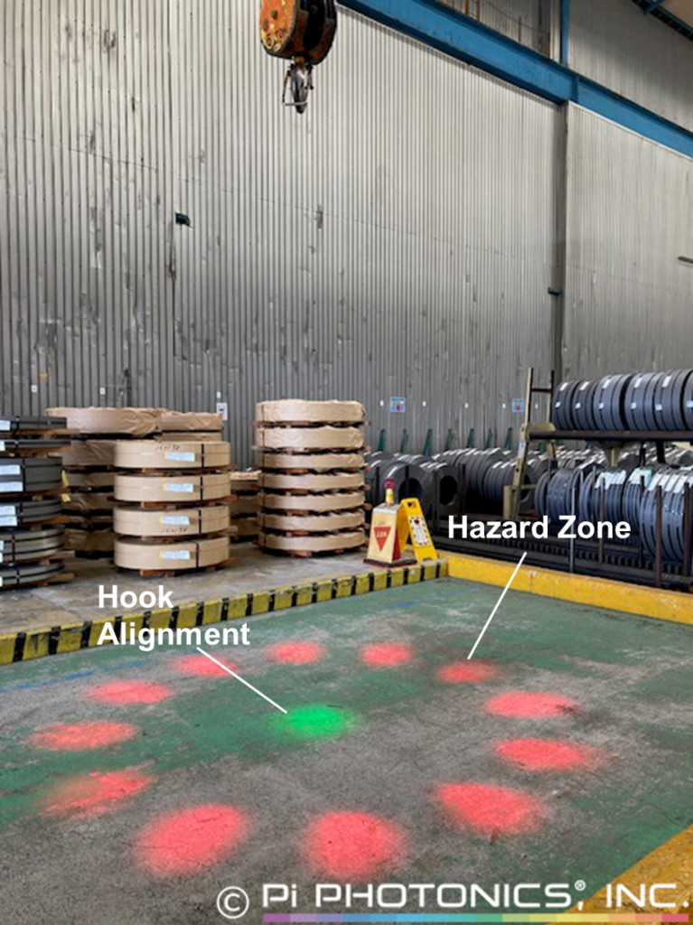 In steel processing plants and heavy industries, overhead cranes are indispensable for moving massive materials. However, the intersection of heavy suspended loads and floor personnel creates significant safety risks. The HOLOLIGHT DOT-RING CENTER provides a visual safety solution to mitigate these risks while improving operational efficiency.
