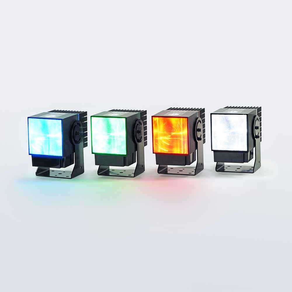 2025年10月リリース HOLOLIGHT LINE-FLAT ホロライト・ライン・フラット ホロライト・ライン・フラットは、ホロライト・ライン36W品と比較して、直線光の平坦度と光出力を強化し、視認性を大幅に向上した製品です。照明色は赤・緑・青・白・電球色の5色に加え、近赤外光(850nm・940nm)もラインアップしました。これにより、工場内での歩車分離や立入禁止エリアの明示といった安全表示用途から、精密検査や研究開発分野における特殊照明ニーズまで、より幅広い幅広いニーズに対応可能です。さらに直線光の長さが異なるF型、FP型の2種類を用意しました。 ホロライト・ライン・フラットの主な仕様 製品名 ホロライト・ライン・フラット(英品名 : HOLOLIGHT LINE FLAT) 型式 HLL44-F 光形状 直線平坦型 規格電力 44W品 照明色 赤色、緑色、青色、白色、電球色、近赤外光(850nm帯、940nm帯) 配光特性 照射距離5m時 線幅10-20cm F型:長さ5.0m / FP型:長さ5.6m 本体質量 約1.5 kg(電源部は除く) 外形寸法 W103×H103×D160mm(屋内用、固定部は除く) 備考 簡易屋外用・屋外用の設定オプションあり 光パターン比較(照射距離5m)